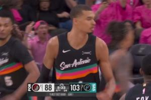 GIF-文班撤步三分再轰进!33分超邓肯!队史季后赛首秀得分纪录!